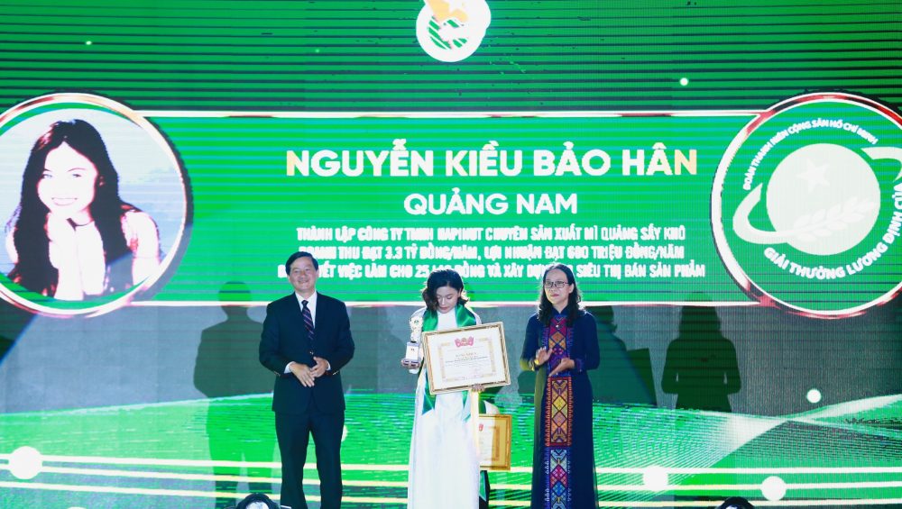 Tại chương trình năm nay, có 32 “nhà nông trẻ” xuất sắc với ý chí vươn lên làm giàu và đạt thành tích cao trong toàn quốc được trao giải thưởng Lương Định Của. Và bà Nguyễn Kiều Bảo Hân – CEO của Hapinut là 1 trong 32 gương mặt tiêu biểu với những đóng góp tích cực vào việc xây dựng phát triển nông thôn mới, phát triển nông nghiệp bền vững của đất nước.