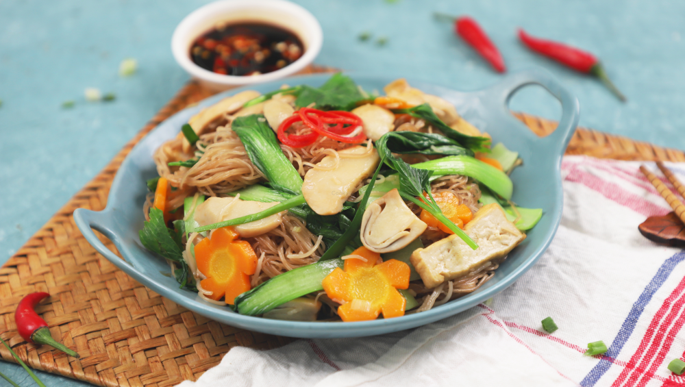 2. Bún gạo lứt xào với rau củ chay