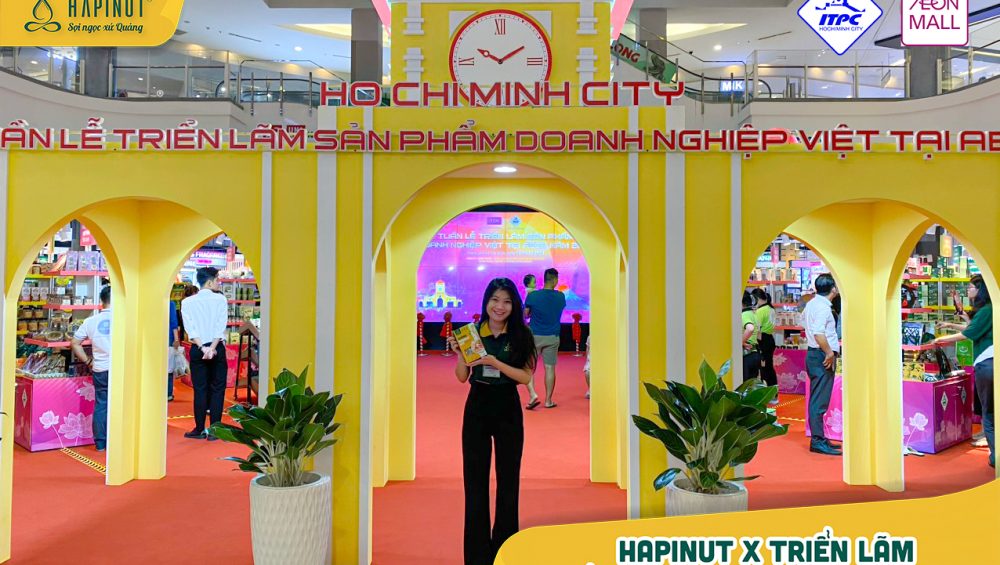 Ngày 05/10/2023 – 09/10/2023 vừa qua, HAPINUT đã có mặt tại AEON Mall Tân Phú Celadon để tham gia “Tuần lễ Triển lãm Sản phẩm Doanh nghiệp Việt và chương trình kết nối Doanh nghiệp đưa hàng vào chuỗi siêu thị AEON năm 2023” .
