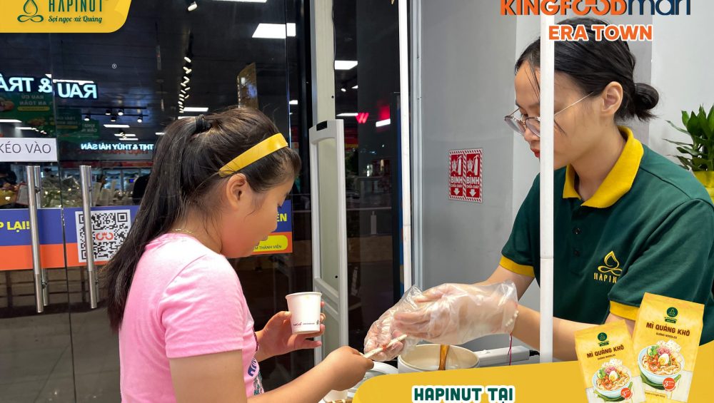 Ngày 13/08 vừa qua, HAPINUT đã tổ chức một buổi Sampling hấp dẫn tại Kingfoodmart Era Town và nhận được sự ủng hộ nhiệt tình từ quý khách hàng tại đây. Món mì Quảng thịt gà xé với hương vị đậm đà của Bộ Kit trọn vị nhà HAPINUT đã tạo nên một trải nghiệm ẩm thực tuyệt vời với thực khách tại Kingfoodmart.